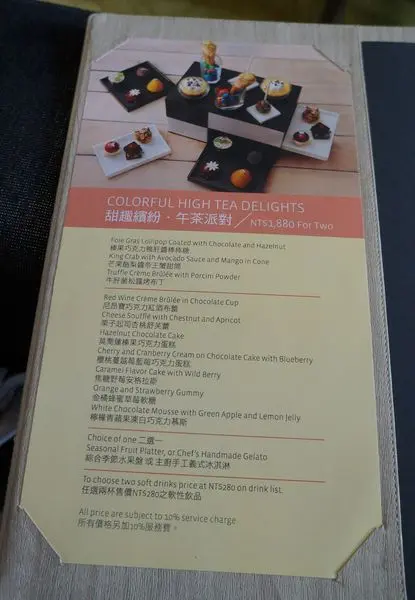 另再提供季節水果及手工義式冰淇淋二選一,以及任選兩杯價格$280的軟性飲品
