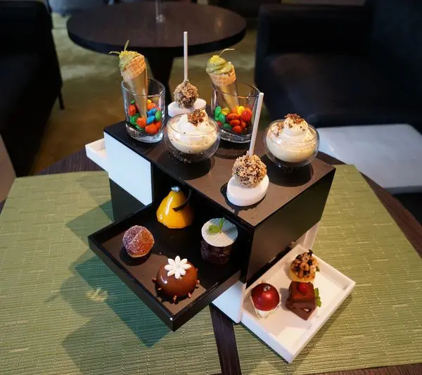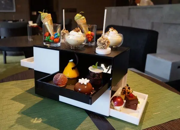 黑白對比色顯得很搶眼,甜點層可以自由拉開,也可以取出