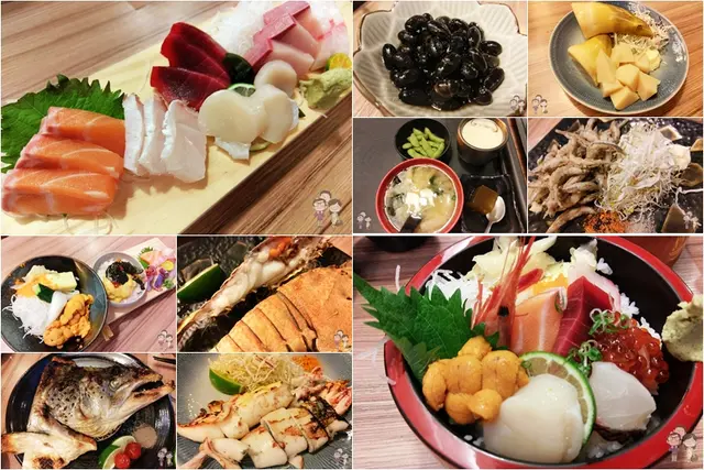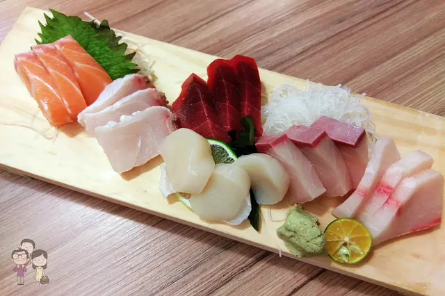 鮭魚、真鯛、黑鮪魚、干貝、青甘跟海鱺。