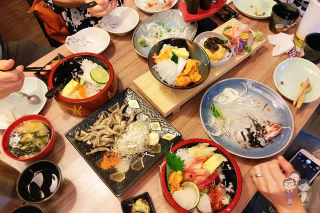 除了有招牌丼飯之外,還有滿滿一桌的各式海鮮,真是讓人大大滿足的一餐啊!