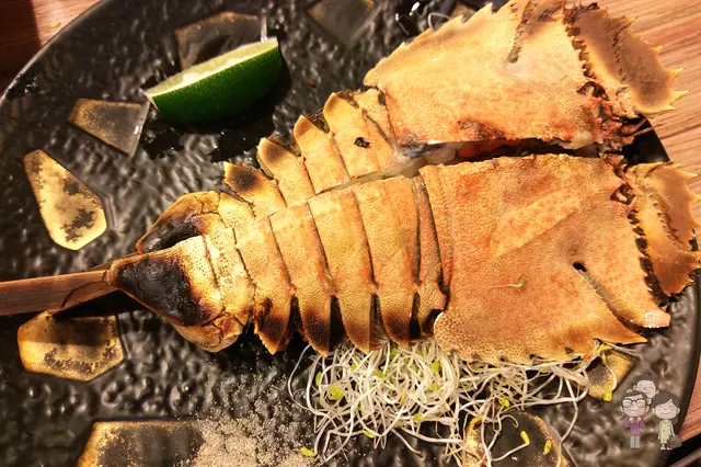 繼續!鹽烤活扇蝦(220元/隻) 。