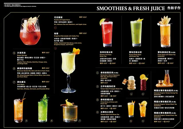 雖然是台菜餐廳,但叄和院一定都會有一個調酒的吧檯,當然不是只有提供調酒,也有各式飲料。讓台菜餐廳不僅時尚,還更像餐酒館。
