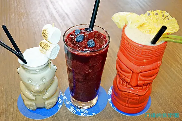 用了一個小熊造型的玻璃杯盛裝,還附2顆烤棉花糖,這麼可愛的飲料,就給當天朋友的小孩喝了。