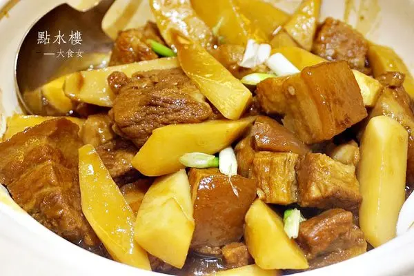 ▼綠竹筍燒肉,肥瘦相間的三層肉吃起來肉質Q彈、富有嚼勁!而略帶紹興酒氣的三層肉,可說是完美蓋掉了大食女害怕的豬肉腥味,搭著一旁的筍子作夥入口,更是美味!