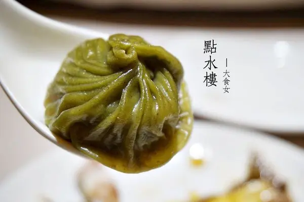 ▼九層塔小籠包,是大食女當天最喜歡的一款!色澤艷如翡翠般的外皮,乍看之下,其實挺像薄皮版草仔粿的(竊笑),一入口中,嘴裡瞬間九層塔香氣滿盈!從裡到外,都明顯感受得到九層塔的存在!是三款小籠包中,最重口味的一款,所以也建議朋友,如果三種小籠包都點的話,可將九層塔口味放在最後品嚐