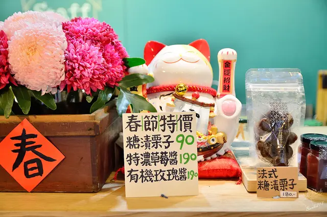 除了霜淇淋跟飲品外,也販售糖漬栗子、草莓醬、玫瑰醬,這些也會出現於不同口味的霜淇淋上。