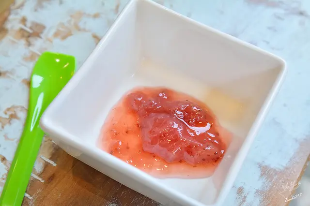 店家另給我品嚐看看在販售的草莓醬,和馬拉邦山草莓霜淇淋上方的草莓醬相同,味道上較為香甜,也較為單純的草莓原味。
