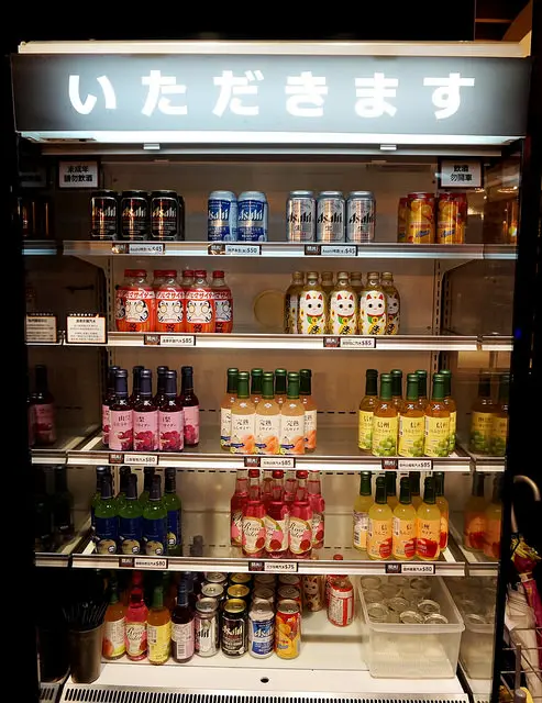 一整排罐裝冷飲,全部都是日本的喔~ 包括各種汽水,啤酒等