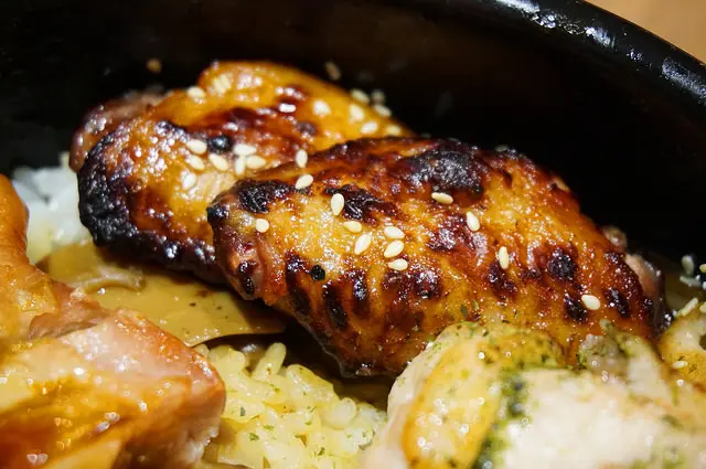 肉質比較乾柴的雞胸則以炙燒美乃滋的方式,彌補油潤度不足的問題