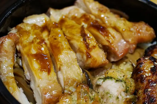 整塊雞腿排淋上甜甜的醬汁,軟嫩的雞肉吃再多也不膩