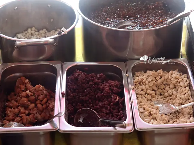 配料也是自家煮的,有大紅豆、紅豆、花生、薏仁、綠豆、芋圓等。
