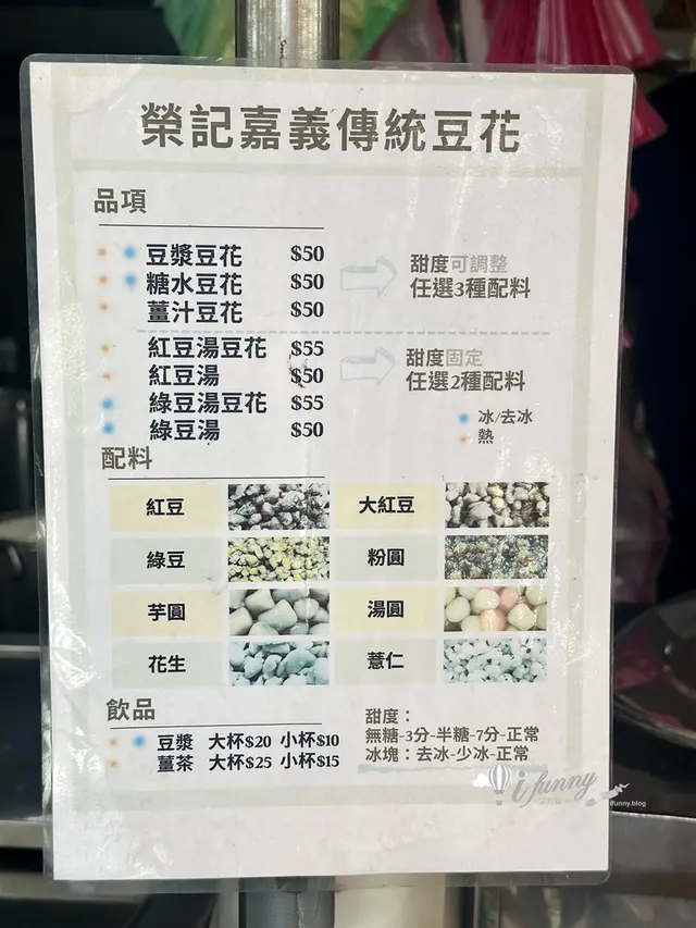 榮記嘉義傳統豆花位於市政府站附近,美食一條街的永吉街30巷,以均一價50元的銅板價,提供手工自製的豆花,搭配紅豆、綠豆、芋圓、湯圓、粉圓等配料,而且可以調整甜度及冰塊,是信義區cp值很高的豆花店。