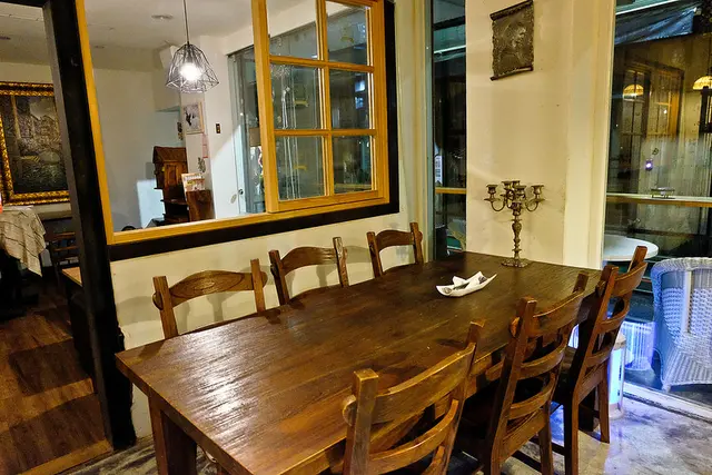 裡面的空間也算寬敞, 厚實的木桌與還蠻舒適的座位是我所愛
