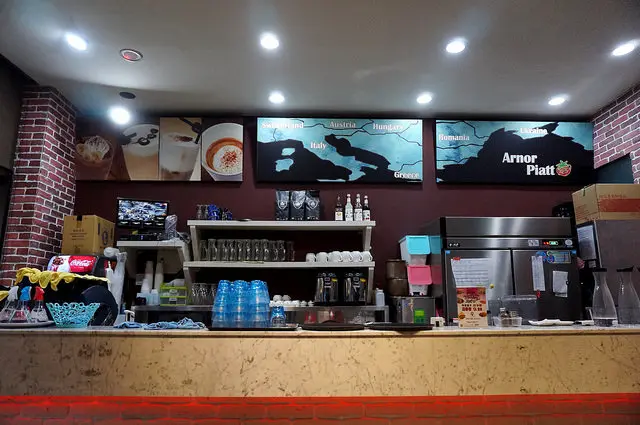 吧檯上方還畫著歐洲地圖
