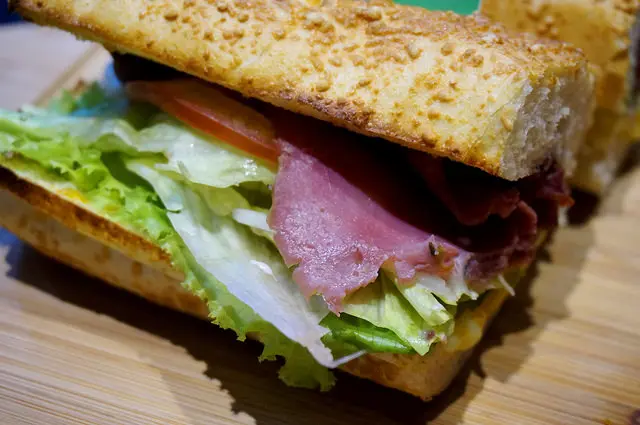 法國麵包大約8吋對半切,裡面的餡料相當實在