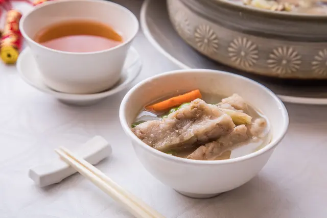 但因為糕體紮實,欣葉芋頭(鹹)年糕可以煮湯,泡久了也不軟爛,口口都能吃到豐富有層次的芋頭料,冷天暖暖吃超幸福!