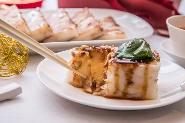 港式蘿蔔糕完全不需要沾醬,光是靠本身的鹹度鮮味就夠了,口感也相當的紮實有彈性,還能吃到的蘿蔔絲水嫩的口感,金鉤蝦、臘腸經過爆香,香死人了!這蘿蔔糕超厲害!