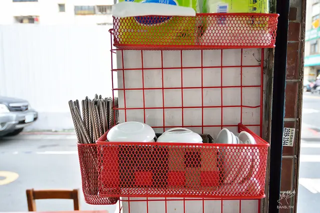 一旁有不銹鋼筷子與小碟子、辣椒醬、餐紙可供自取在店內使用。