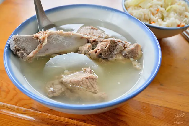 家常味十足的原汁排骨湯,一根大骨、燉煮到軟嫩的蘿蔔,湯頭清甜不油膩,但簡單可口。