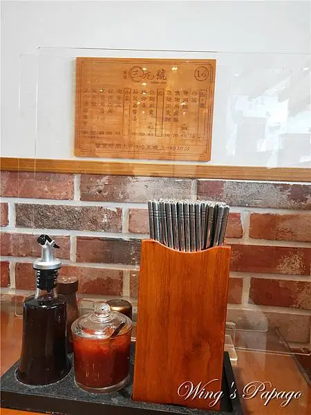 每桌設有餐點木牌可供參考,桌面皆有擺放醬料自由添加,