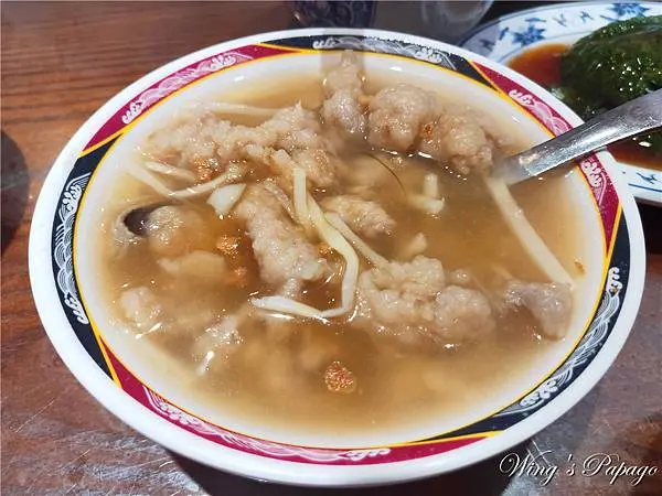 肉羮給的很多幾乎是滿滿一碗,是真材實料豬肉條裹粉製做的肉羮,
