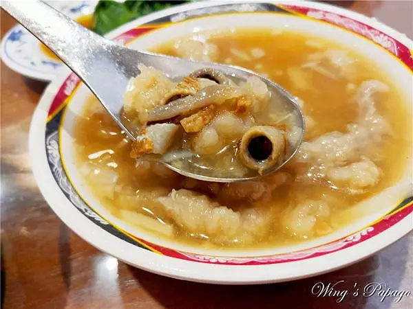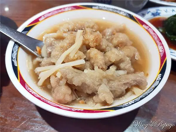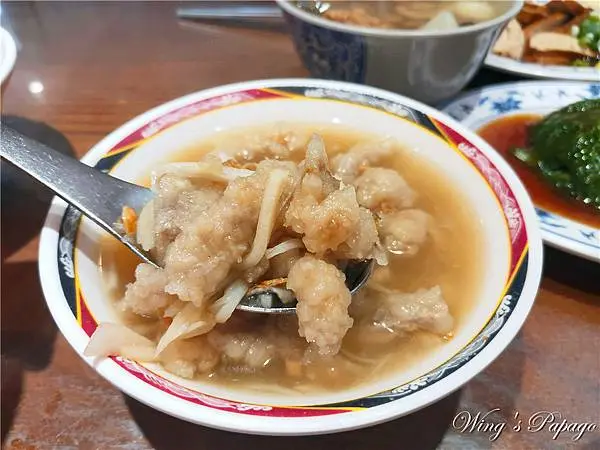 湯頭用了魚翅、香菇、筍絲、魚皮等食材烹煮,口感甘甜,自行加點烏醋更合味。