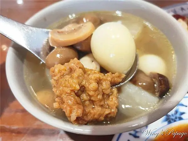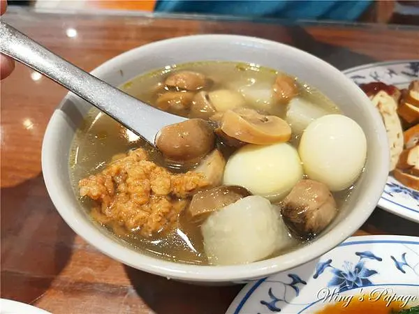 沒在菜單上的綜合湯價錢一樣60元,除了有排骨酥、蘿蔔外,松茸、鳥蛋也給的很多,