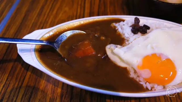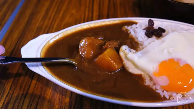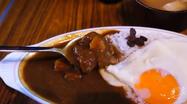 牛肉咖哩飯(160元)、荷包蛋(20元)