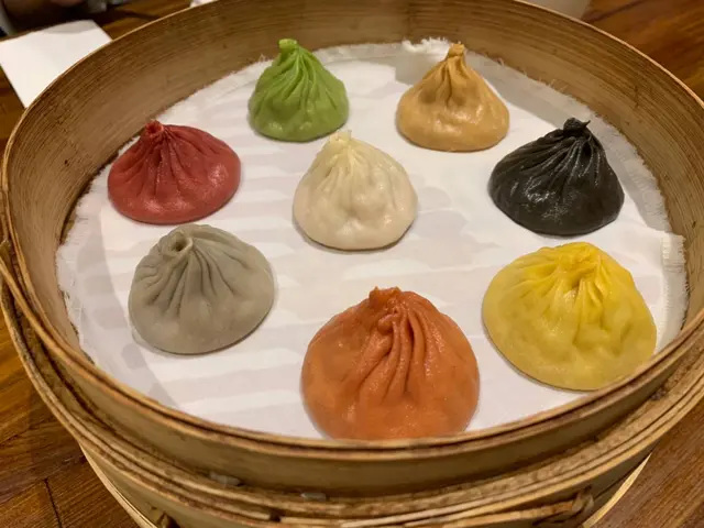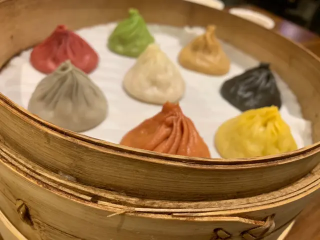 八色小籠包有原味、人蔘、鵝肝、黑松露、起司、蟹粉、蒜香以及麻辣八種口味。八色小籠包的研發靈感來自於甜點馬卡龍,每顆25公克大小,18摺的薄皮是最恰到好處的口感