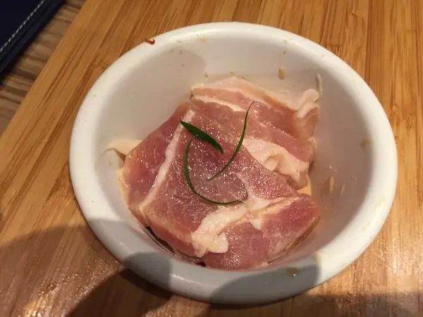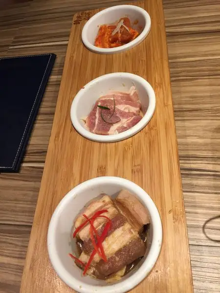 三品可由店家六種口味的五花肉當中挑選三種口味