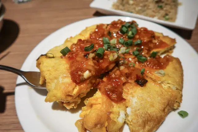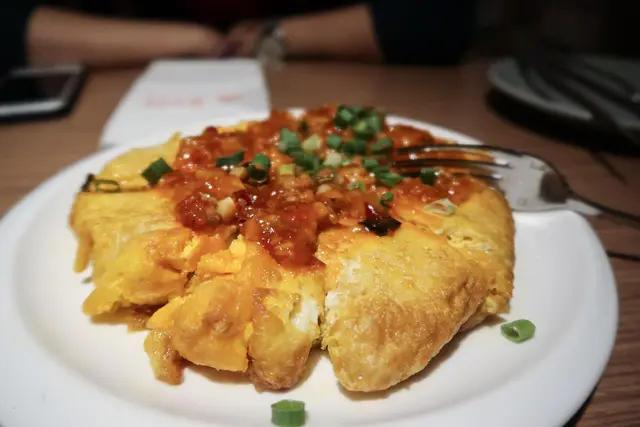 烘蛋算是當天大家都喜歡的菜色,厚厚的樣子十分討喜,蛋液外皮焦香,中心蓬鬆滑順,加上一些肉末木耳丁的特製燒醬,是道經典又老少咸宜的菜色。