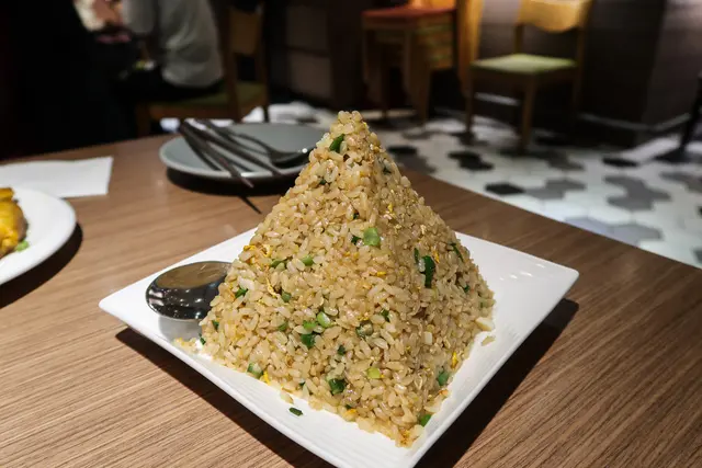 推成一座金字塔的炒飯,香氣也很不錯,口味上不會過鹹,拿捏得宜。