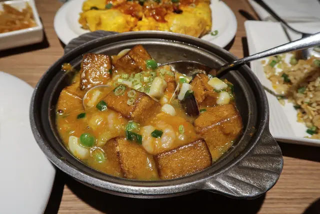 口味較為淡雅的一道,以海鮮豆腐煲來說價位也不高。裡面是咬起來拋拋的那種蝦仁、花枝塊與蛤蠣,炸過的蛋豆腐。