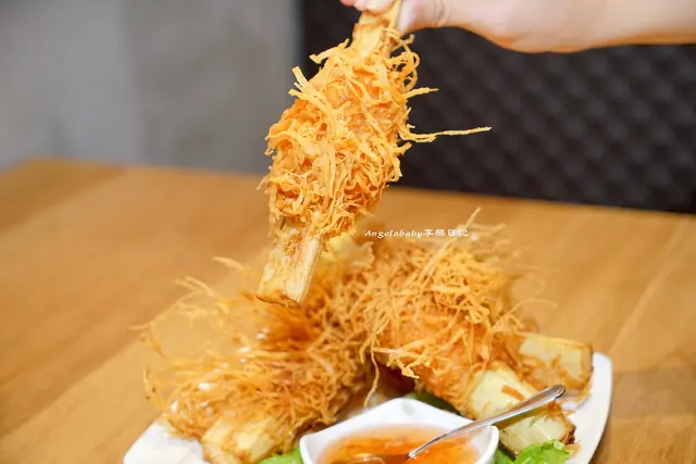 咀嚼時有著特殊的香甜味,babe吃巨無霸甘蔗蝦的時候麵衣掉入飯碗中