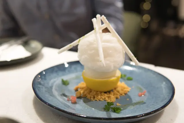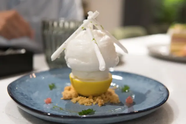 最上頭是檸檬柚子泡泡、接著檸檬棉花糖、檸檬雪酪、糖漬檸檬,加上柚子白巧克力,層次感豐富,在嘴裡堆砌著『酸』的各種變化
