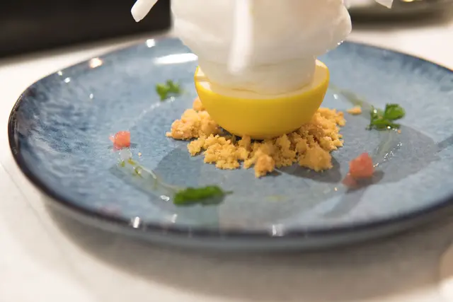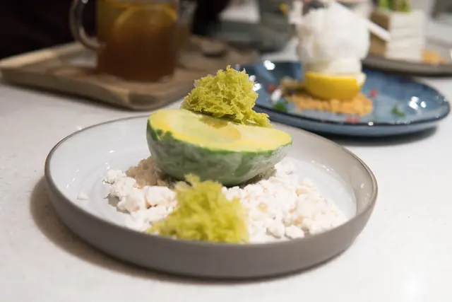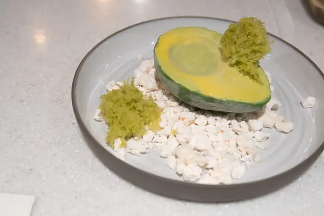 大家看到中間果肉是酪梨凍糕、檸檬油和葡萄柚卡士達