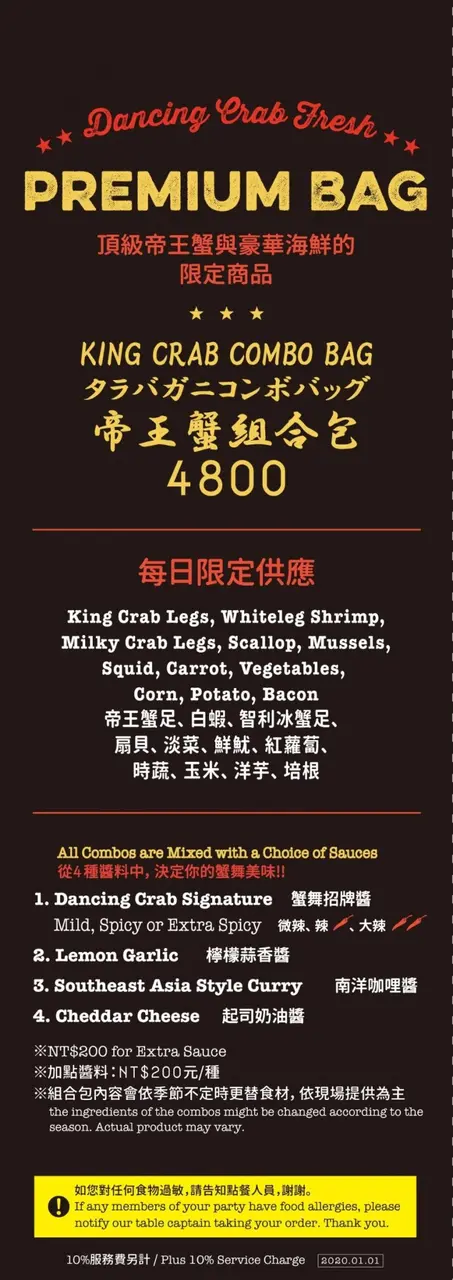 讓我先來介紹一下Dancing crab的菜單選擇,依照雙人和多人組合各有推薦的套餐
