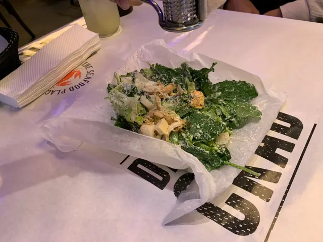 好的,沙拉先來了,是我最喜歡的凱薩沙拉,服務生還幽默地說,別看我們家沙拉長得不好看,但很好吃喔!