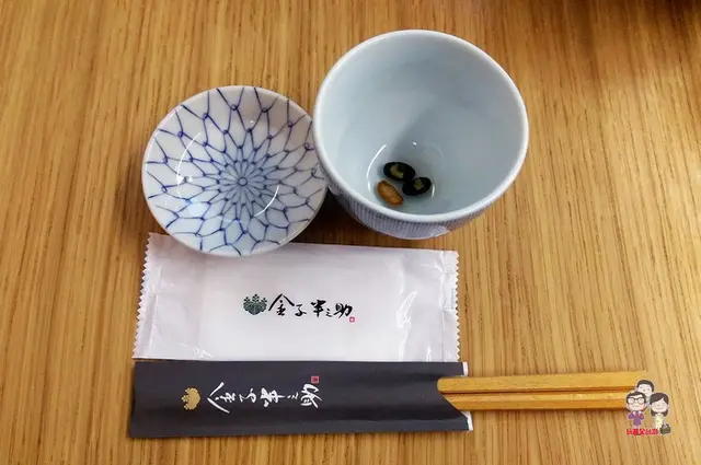 以及放了三顆黑豆的茶杯,一開始服務生還會過來幫忙把熱茶加進去喔。