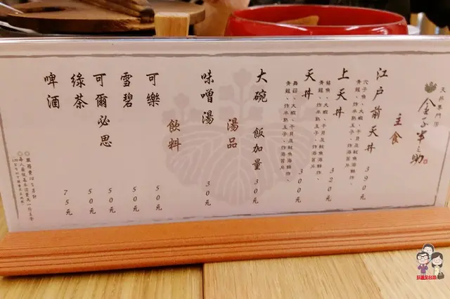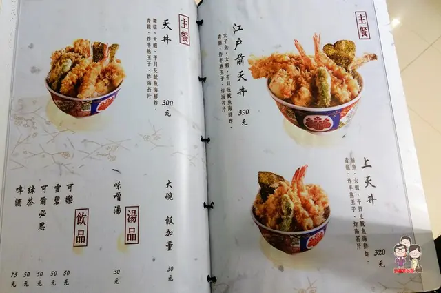 分別為江戶前天丼390,上天丼320 以及天丼300,