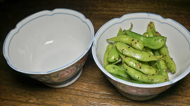 招待的毛豆, 旁邊另附一個碗可以丟殼