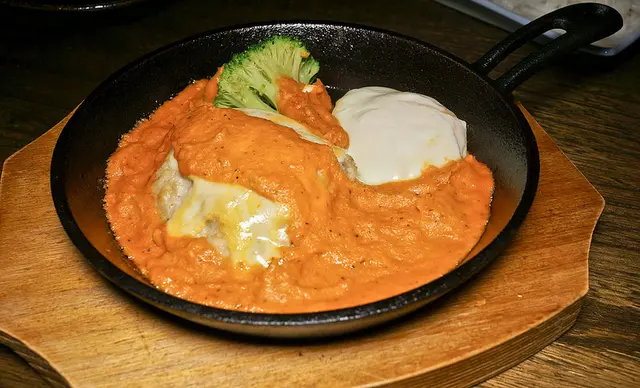 燒的過程中起司與雞肉的香味四溢 ,可以說有人點這道菜的話很容易害到其他桌客人 XD