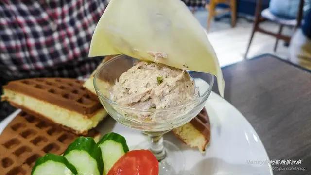 不過一旁附上的鮪魚沾醬卻滿香的~我們喜愛這鮪魚醬勝過鬆餅喔~