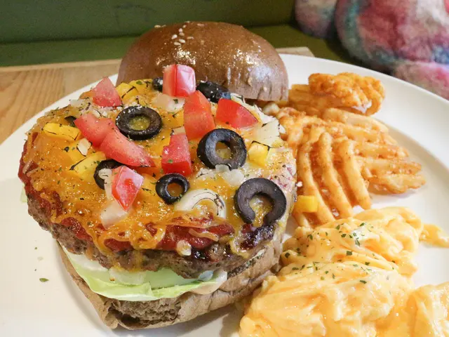 厚實的漢堡肉上鋪滿了美式PIZZA的醬料