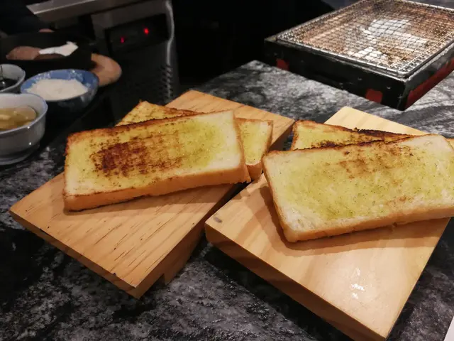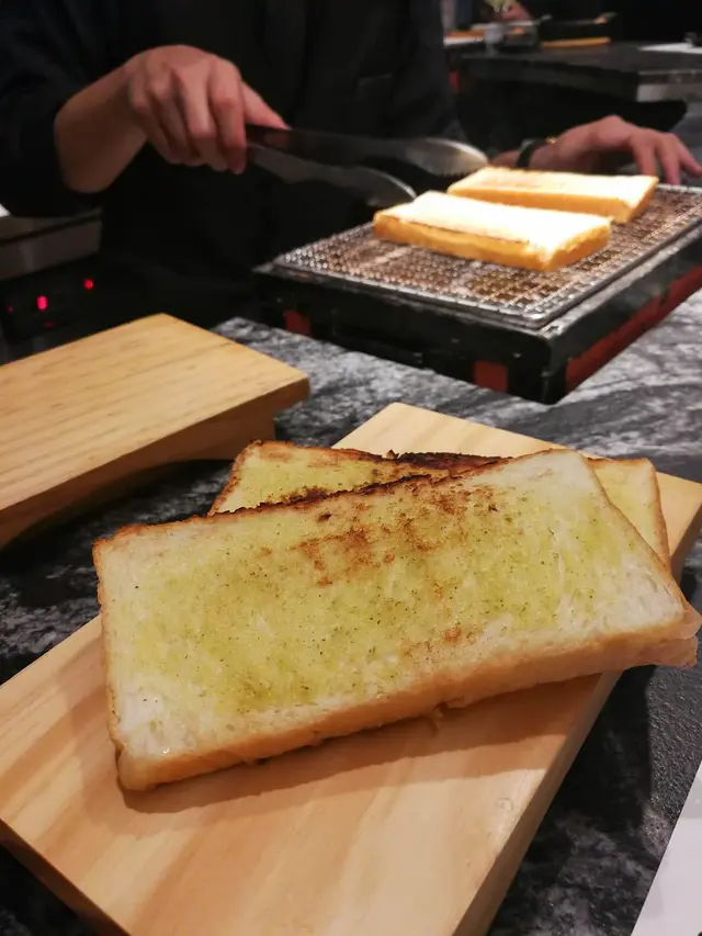 吐司上烤上烙痕!自製大蒜抹醬融入於吐司之中~