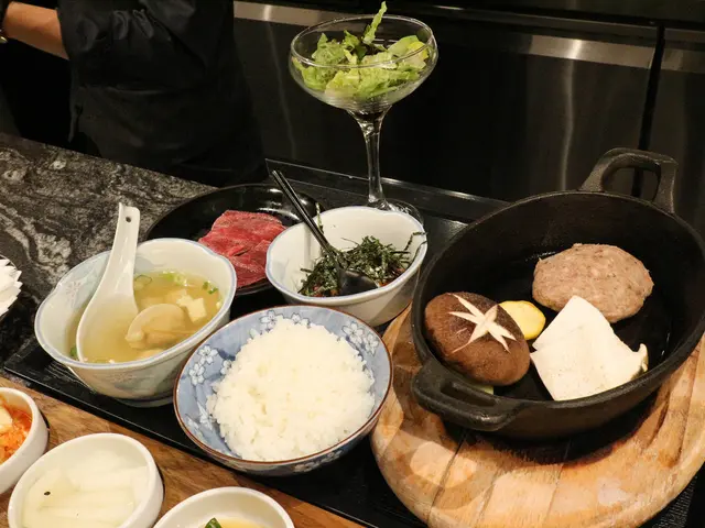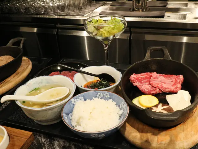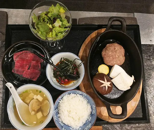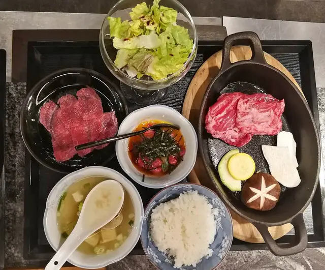 其它皆相同,包含了白米飯,現烤牛舌沙拉,生牛肉韃靼,蛤蜊湯,烤蔬菜等等~