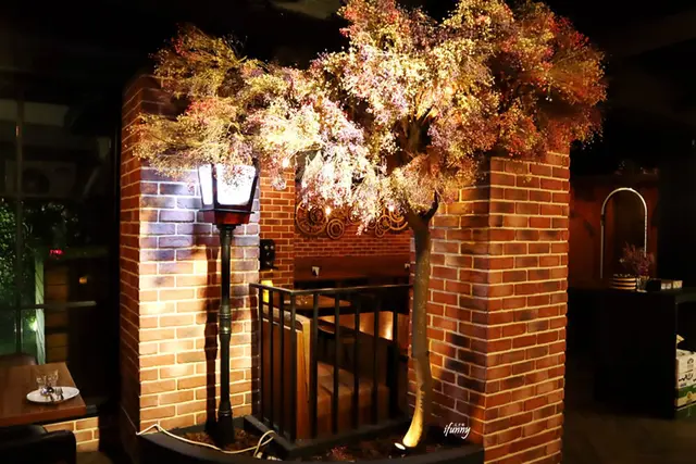 在餐廳的一隅,彷彿走在歐洲的街道上一般的路燈及街樹。