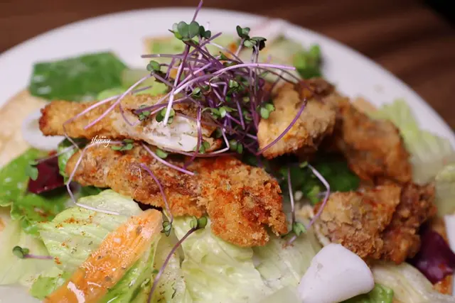 搭上滿滿的生菜,油炸過的軟殼蟹顯得清爽許多。