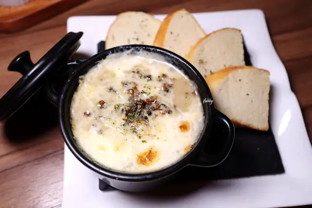 而這道田螺非但沒有擾人的腥味,咬來略帶Q彈嚼勁,加上溫熱的起司白醬,滋潤了麵包,相當不錯呢!