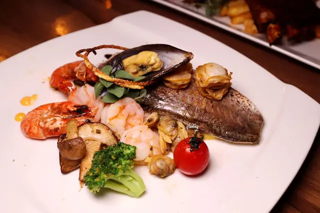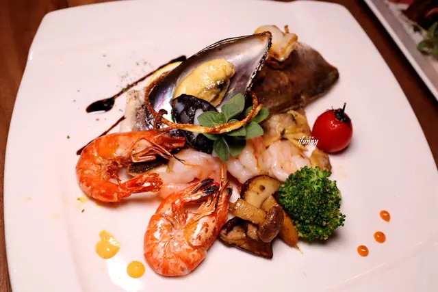 由這個角度看蝦子有帶殼的烤蝦、還有已貼心剝背的蝦仁,兩種蝦子帶來不一樣的口感,唯一相同的是新鮮度及Q彈。